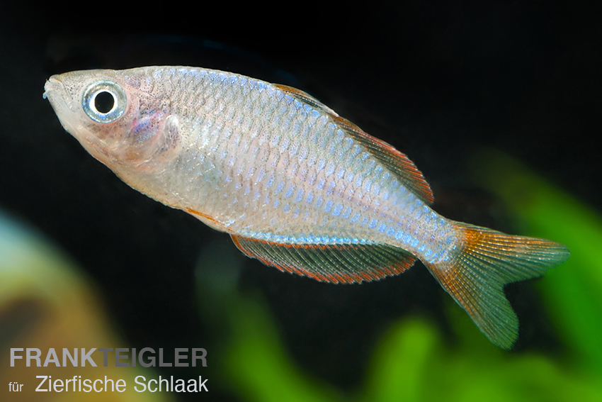 Melanotaenia praecox kann eine Größe von bis zu 6 cm erreichen. Ein schöner und farbiger Fische der was her macht. Der Diamantregenbogenfisch bevorzugt den mittleren Teil des Aquariums und somit in waherer Hingucker. Viele Pflanzen und andere Versteckmöglichkeiten sollten im Aquarium nicht fehlen. Großblättrige Pflanzen wie z.B Echinodoros oder auch hochwachsende Cryptocorynearten sollten im Aquarium nicht fehlen.