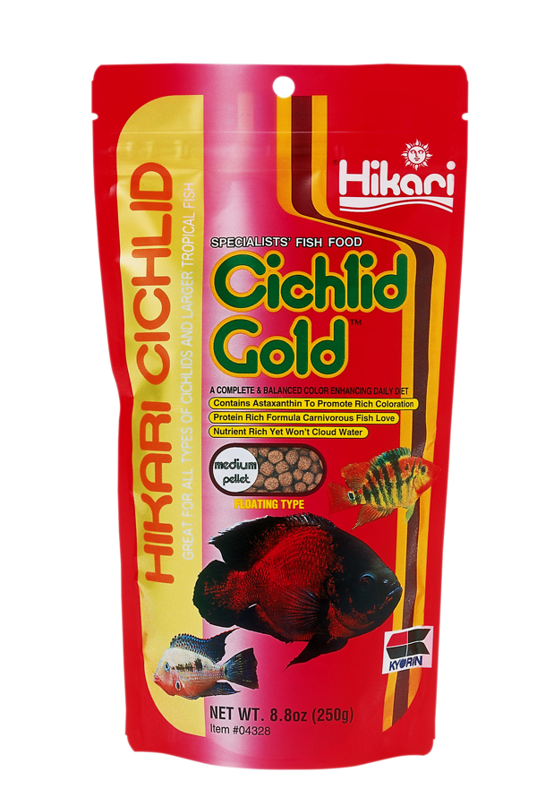 Hikari Cichlid Gold hat den höchstmöglichen Gehalt an Carotin, so dass die Farben das ganze Jahr über schön zur Geltung kommen. |