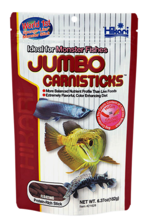 Die treibenden Jumbo Carnisticks haben ausgeklügelte Aromen, Geschmack und Form und werden schnell zu Favoriten für Ihre Raubfische. Der Stick wird im Wasser schnell weich, behält aber seine Form und löst sich nicht auf; somit ist die Struktur vergleichbar mit Lebendfutter. Das ausgewogene Futter enthält mehr Nährstoffe als Lebendfutter. Ein Jumbo Carnistick enthält genauso viele Kalorien wie ein lebender Goldfisch, wodurch die Fütterung von Lebendfutter überflüssig wird. |
